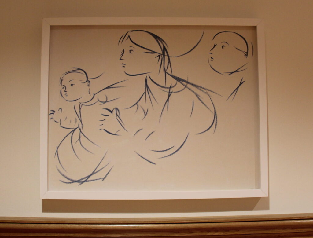 His blue-and-white drawings on view at Calvary Episcopal Church are in his typical style — simple yet full of movement through quick, sketchy lines. They relate directly to an exhibition of Marchutz’s work at the Memphis Brooks Museum of Art in 1969.